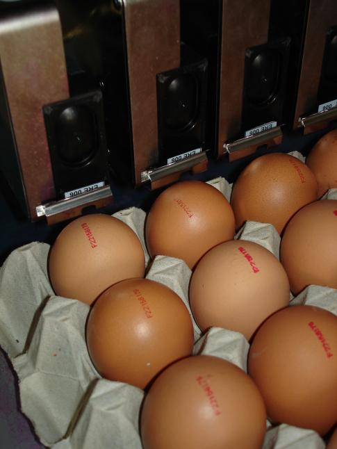 Exemple de marquage JasOeuf 5 têtes sur convoyeur